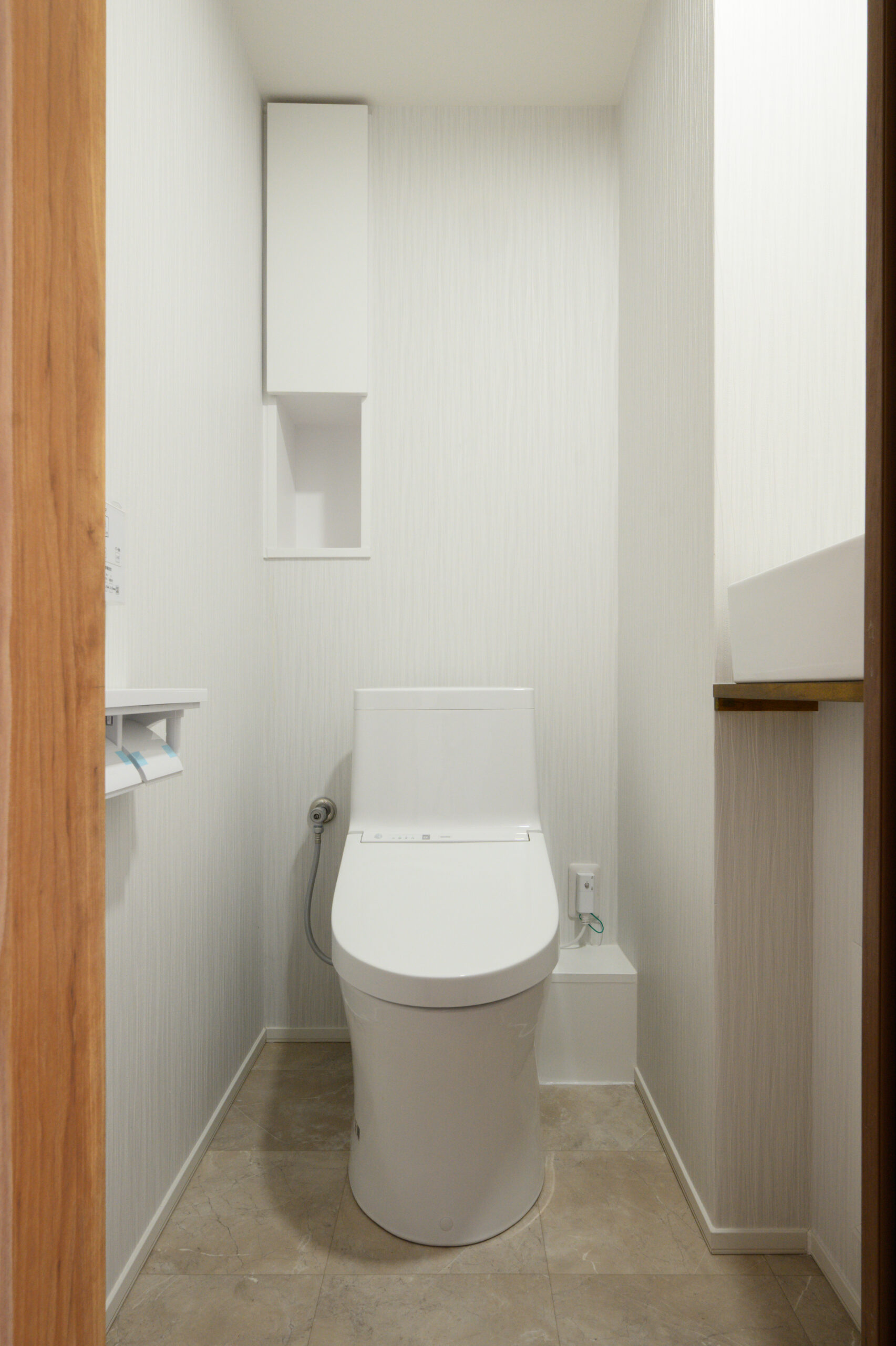 トイレットペーパーや小物をしまえるようにしています。