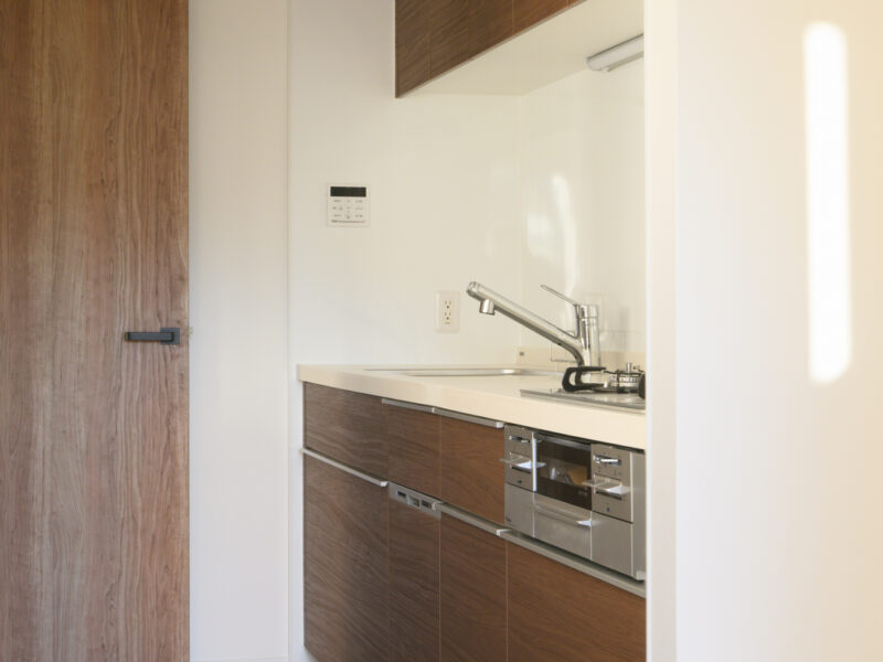 壁付けキッチンは、動線がコンパクトで作業がしやすく、