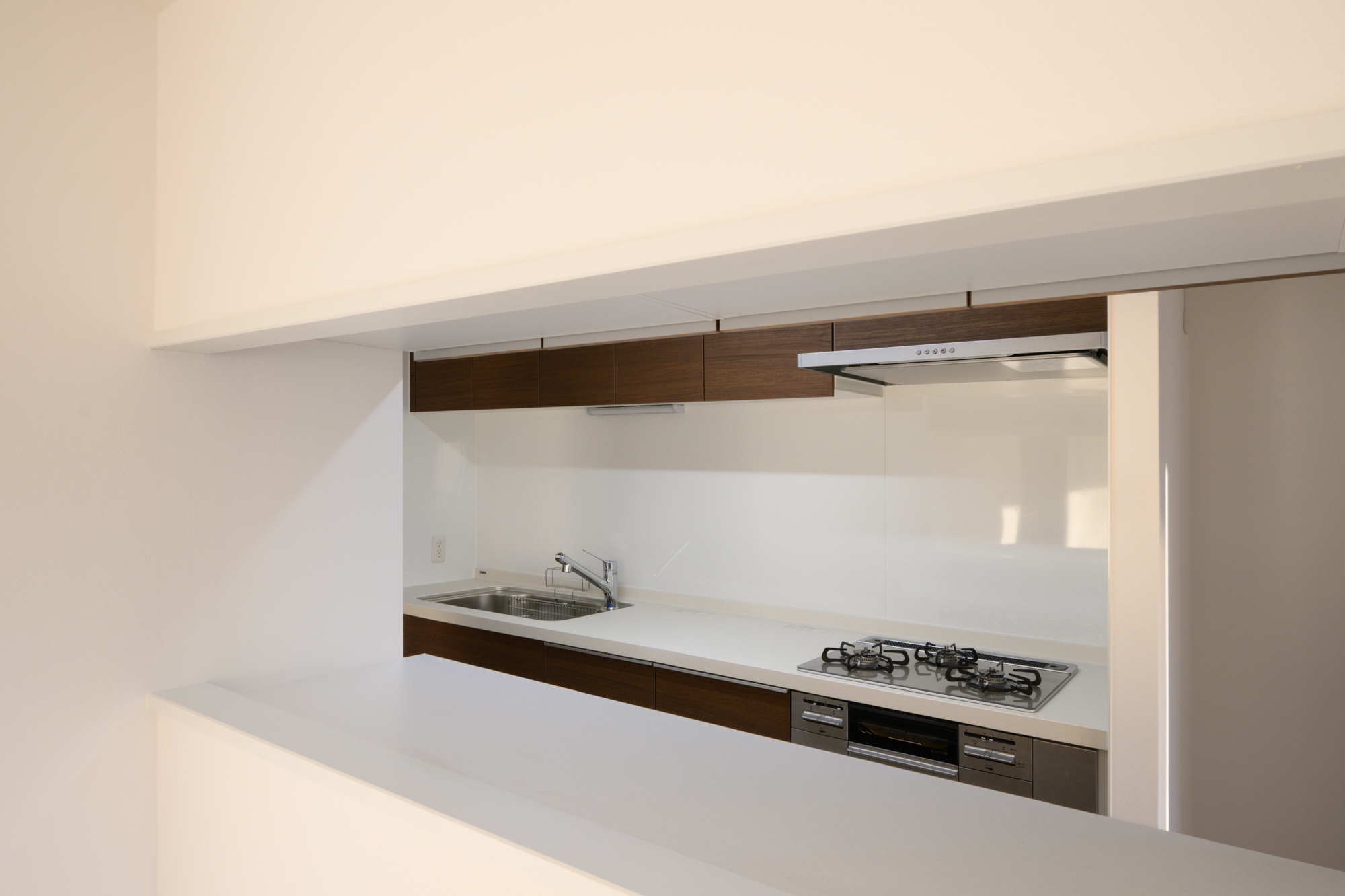 ホワイトの清潔感あるカウンターが調和し、
